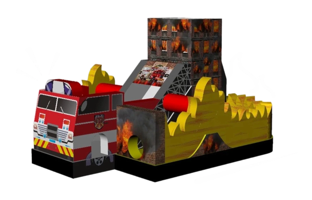 Interaktívny skákací hrad s hasičskou tématikou! Navrhnutý špeciálne pre deti vo veku od 3 do 10 rokov, tento úžasný skákací hrad ponúka nielen skákaciu plochu pre bezstarostnú zábavu, ale aj dve šmýkalky pre ešte väčšiu radosť