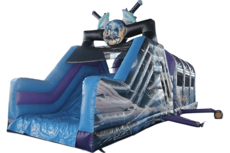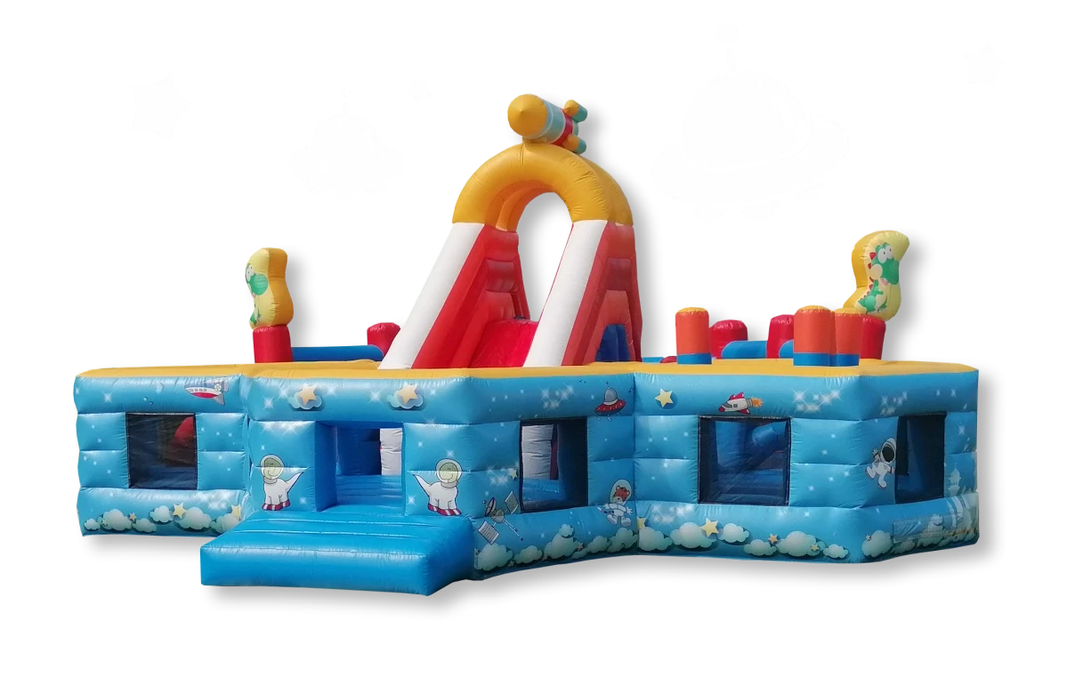 Veľký skákací hrad s vesmírnou tématikou. Vhodná aj pre menšie deti, táto vesmírna skákacia atrakcia poskytuje bezpečné a vzrušujúce prostredie pre všetky vekové skupiny.