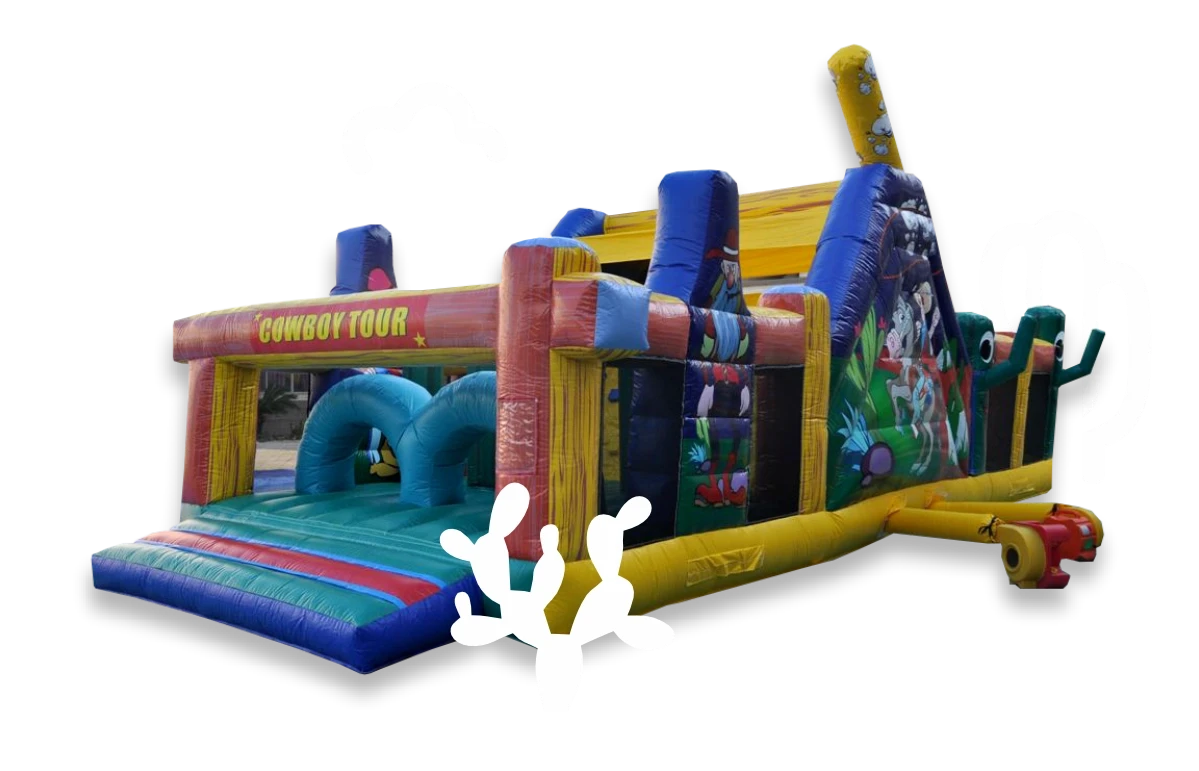 Naša preskakovacia dráha disponuje štyrmi šmýkaľkami a bohatstvom ďalších zábavných prvkov, vrátane nafukovacích panákov a delovej gule. Je navrhnutá tak, aby poskytla bezpečné a vzrušujúce prostredie pre deti rôzneho veku.